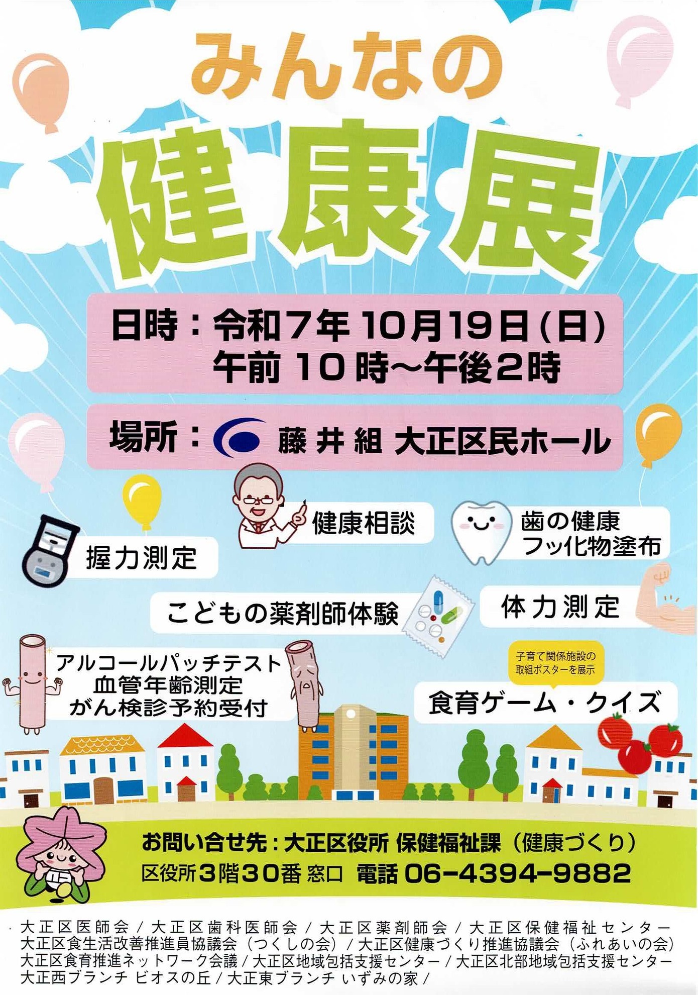 令和5年10月15日(日)大正区民ホールでみんなの健康展を開催しました。